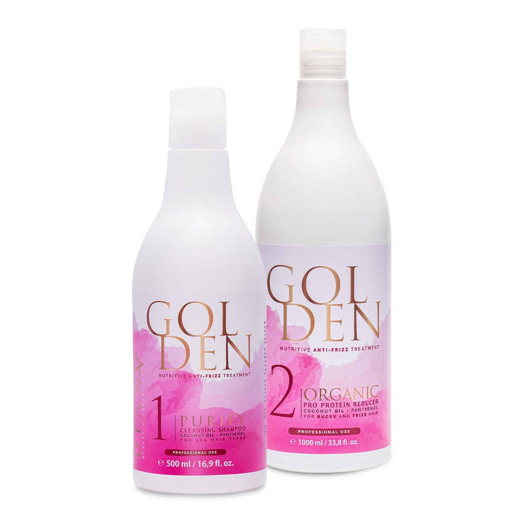 A revolutionary product designed for semi-permanent hair smoothing and nourishing deep treatment. Carefully selected ingredients transform even the most difficult hair into stronger, straighter, repaired hair that’s easy to brush and manage. Protein straightening is a new healthier alternative to keratin treatment and chemical straightening that works instantly to rehydrate & regenerate the hair. It adds an intense glossy shine and reduces frizz. Using advanced protein technology, Golden Professional is a game-changer, transforming the shape and condition of all hair types for 4 to 6+ months.